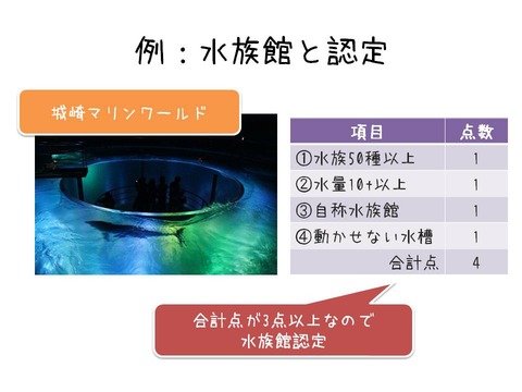 もう1つ唸らされたのが、そういう設問設定のもとにしっかりと判定基準を定めて、国内109施設(だそうです)の「認定水族館」を全てポイント算出して、数値化された結論を導き出されていたこと!