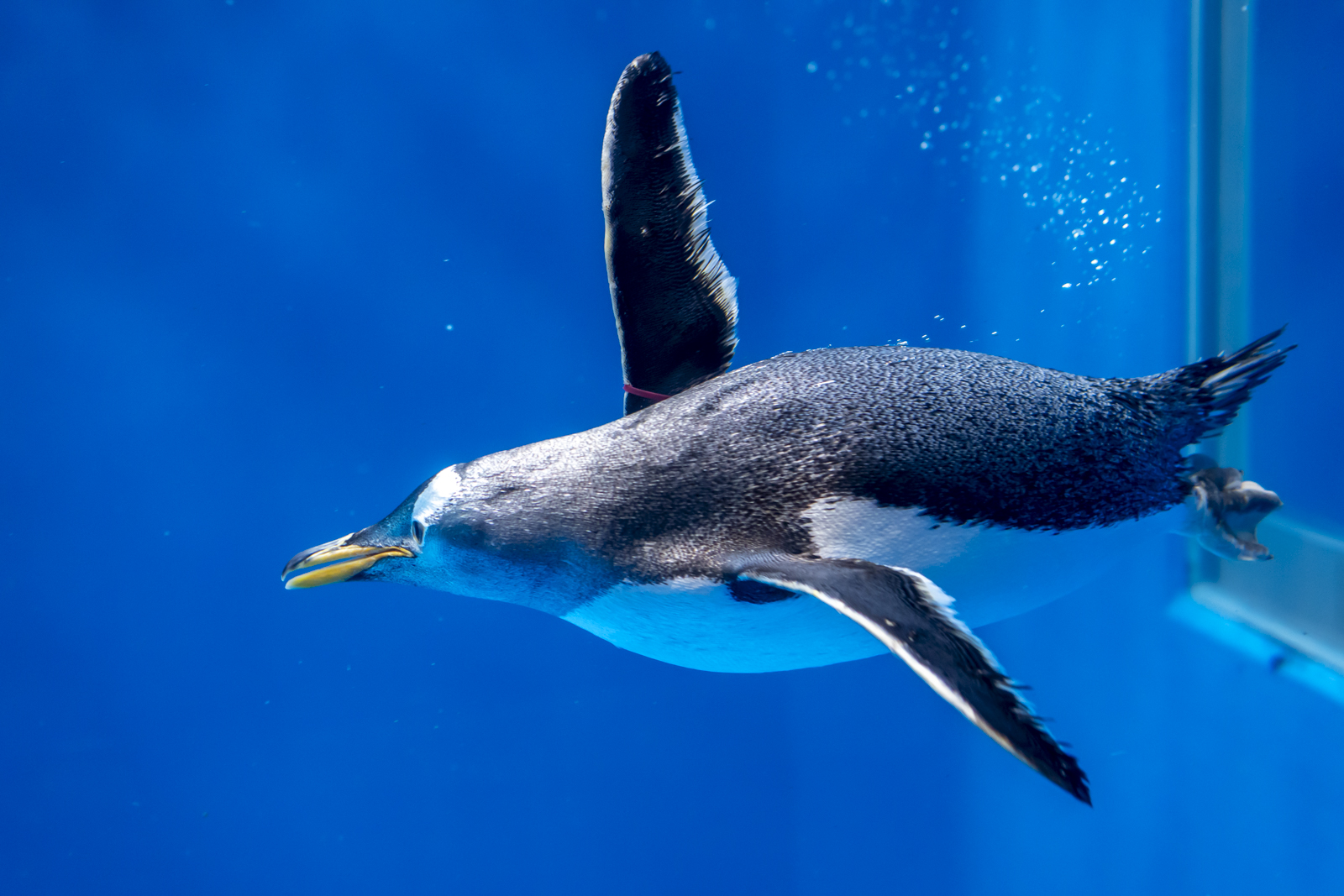 ペンギンなど、一部の生物(主に海獣類)は夜間は見学できないので、日中のうちに見ておきます。越前松島のペンギン館、水中が見やすくて好きなんだよな~。(あとエアコン効いてて涼しいので助かる)