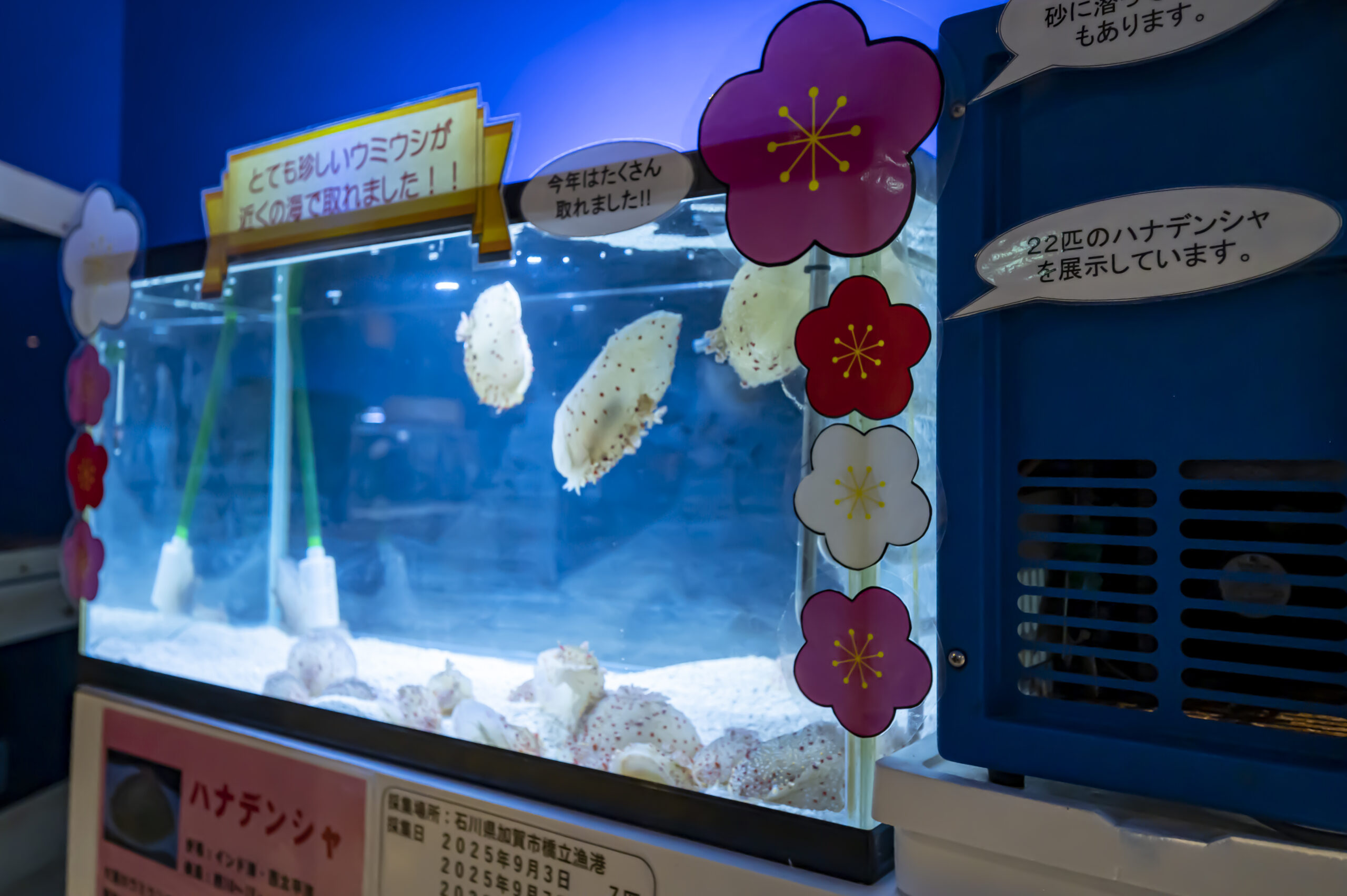 大きなミズダコに触ることができたり、水槽内で産卵したミズダコの卵や育成実験中の稚ダコを観察することができます。