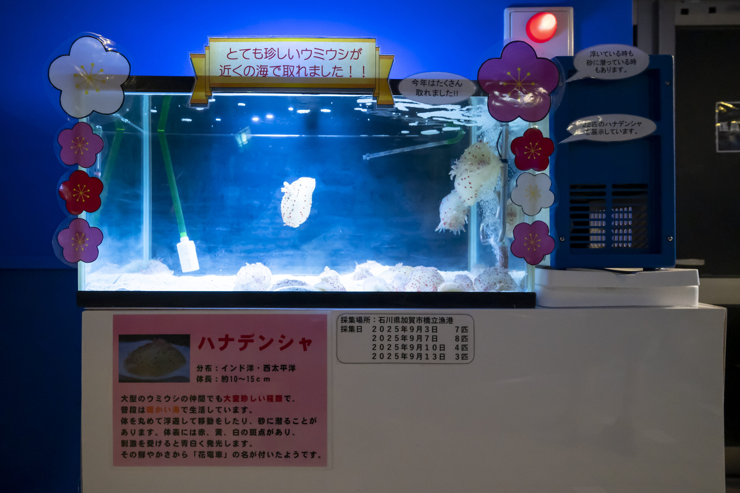 「ひと足先に ”おさかな館”の消灯作業をするんですけど、消灯直後にマツカサウオが発光する様子が見られるので、よかったらご覧になりませんか?」と声をかけていただきました!