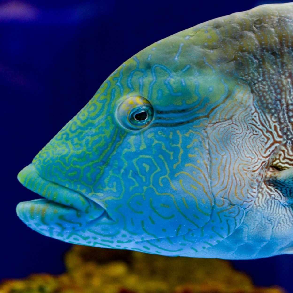 この「世界の海」で個人的に大好きな魚が、「ハワイ沿岸の海」水槽にいるハワイアン・クリーナーラス。