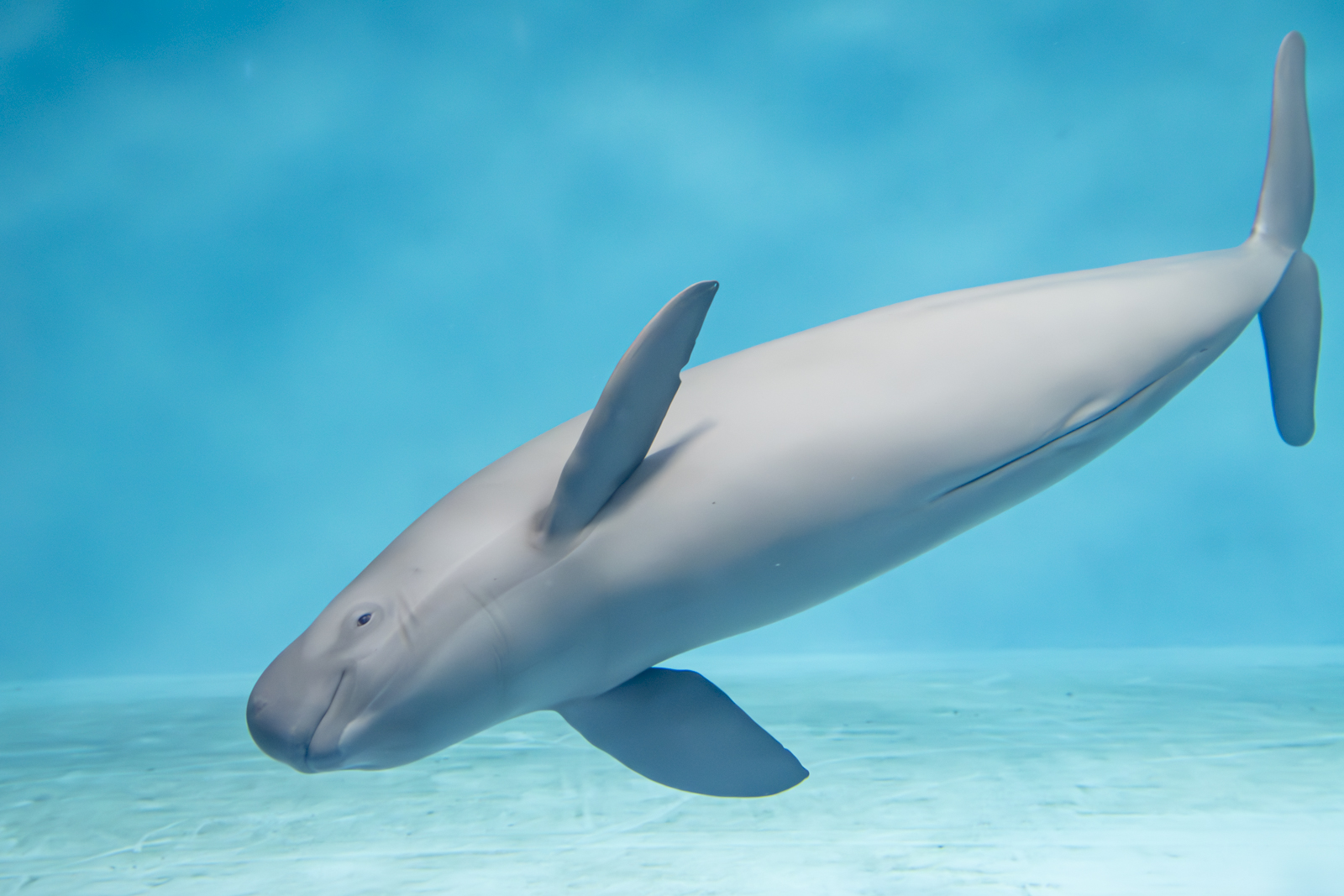 宮島水族館の名物展示といえば、個人的には「カキとイカタコ」なのですが、おそらく一般的に人気動物の1つなのが、瀬戸内海に棲むクジラの仲間・スナメリ。