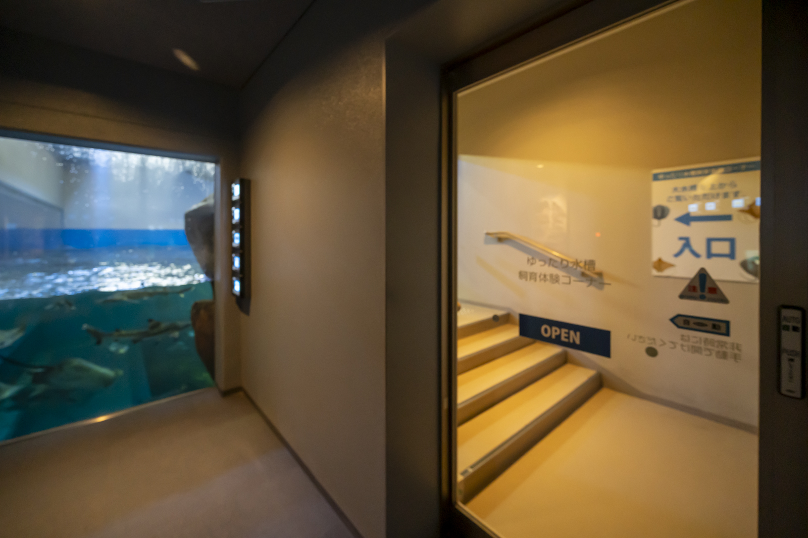 館内の2階、大水槽(ゆったり水槽)の脇の扉の奥が、「飼育体験コーナー」。