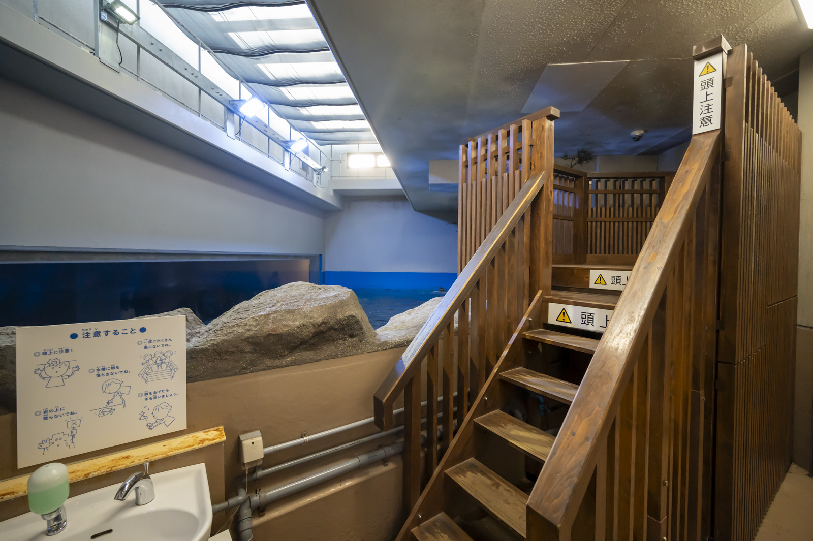 木造のキャットウォークが組まれていて、大水槽を上から眺めることができます!