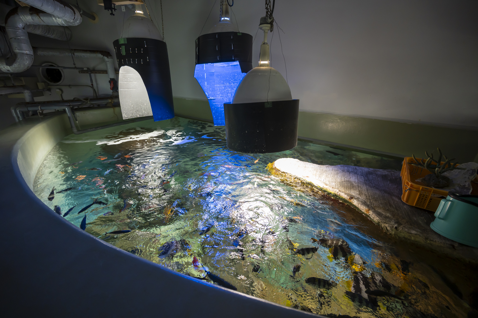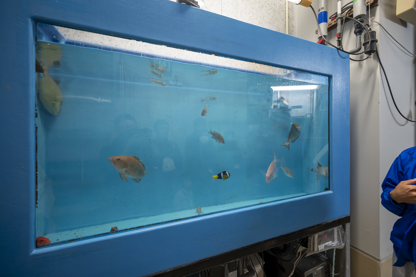 何の変哲もない予備水槽ながら、「なぜ予備水槽で魚を飼っているのか」とか「魚たちが人に馴れるまで」みたいなことを、とても分かりやすく説明してくださいました。