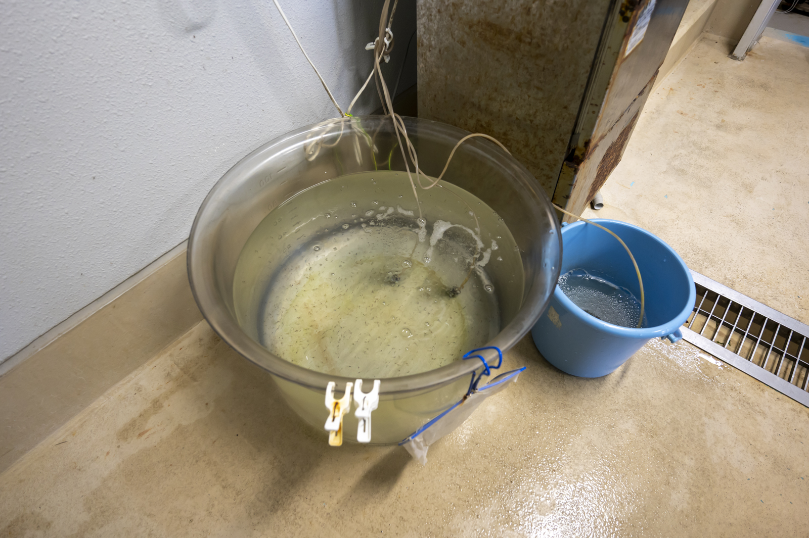 最初に目の前にあったのはこんな予備水槽。