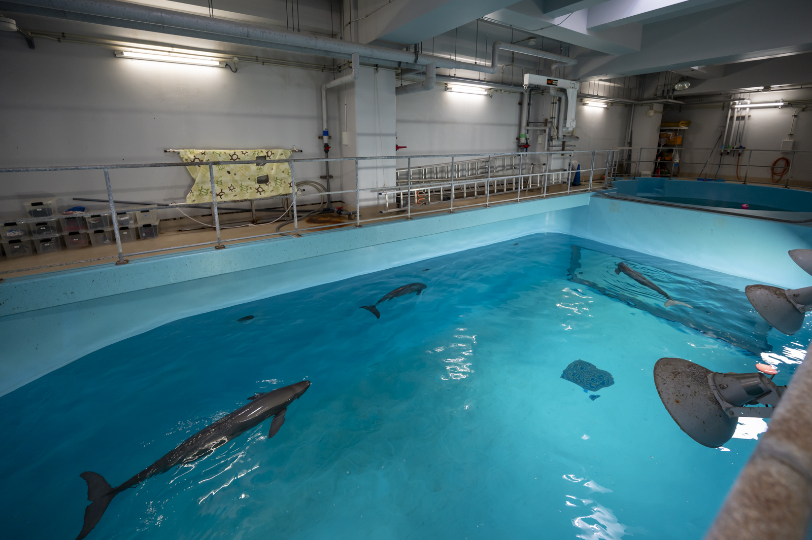 バックヤードツアーでは、スナメリ水槽の裏側も見学できました。表から見るよりも、水槽が意外と大きい!!