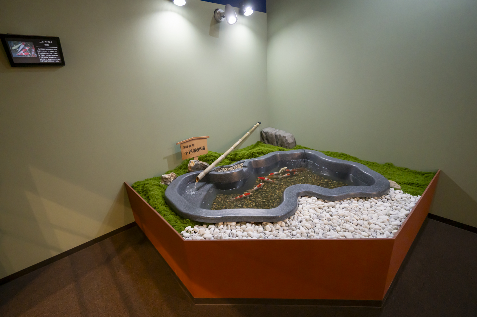 地元の養鯉場が展示協力されている模様。