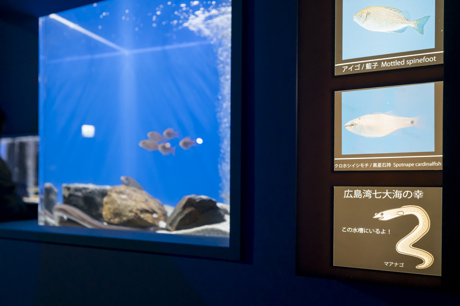 「広島湾七大海の幸」として、身近な水産上有用種が各水槽で展示されています。
