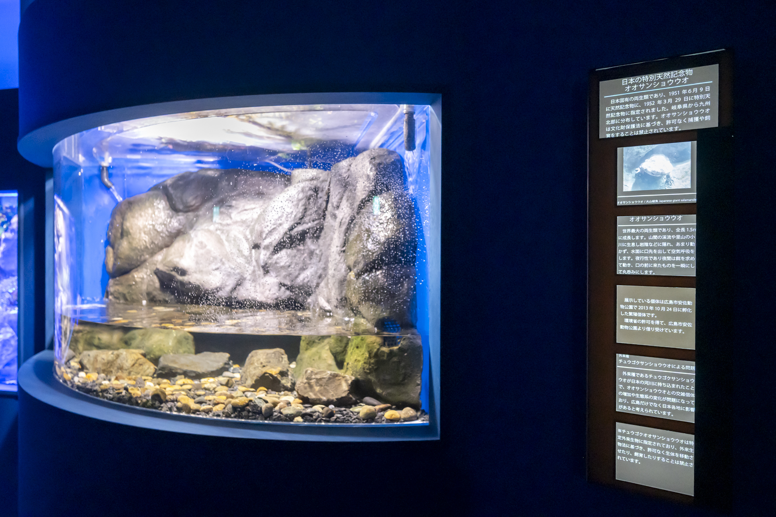 ゴギ水槽の横にはオオサンショウウオ水槽が。