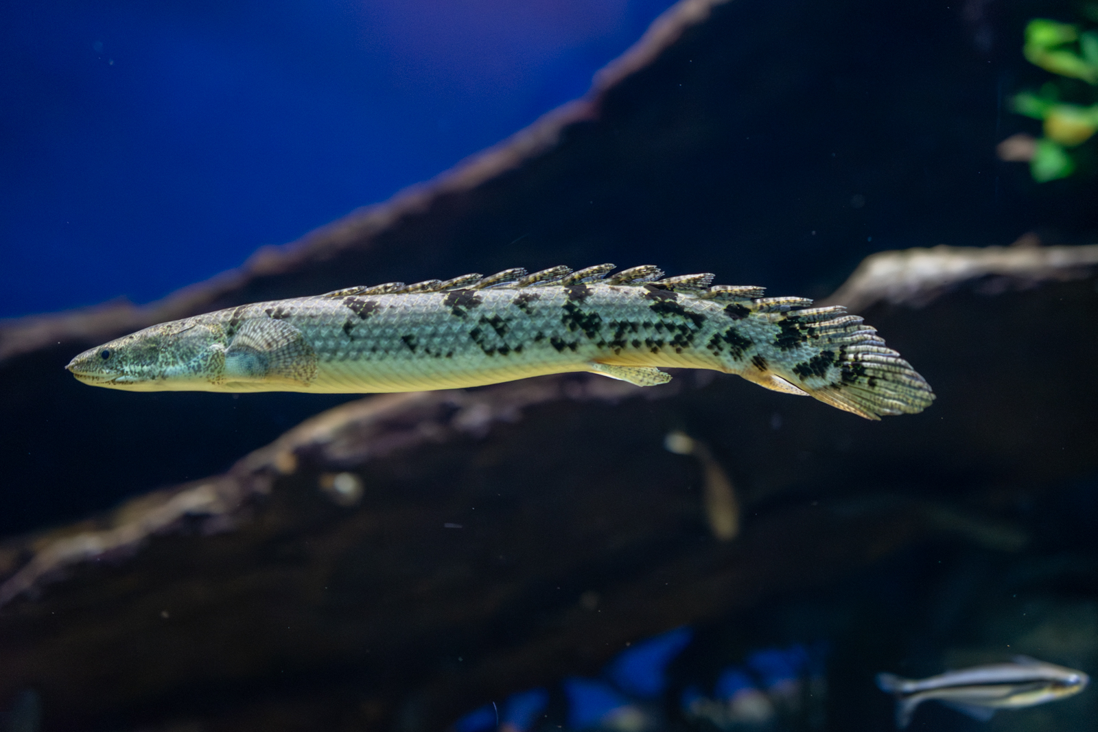アフリカの淡水魚水槽でも、ポリプテルス(デルへジィ?)が悠々と泳ぎ回っていた。