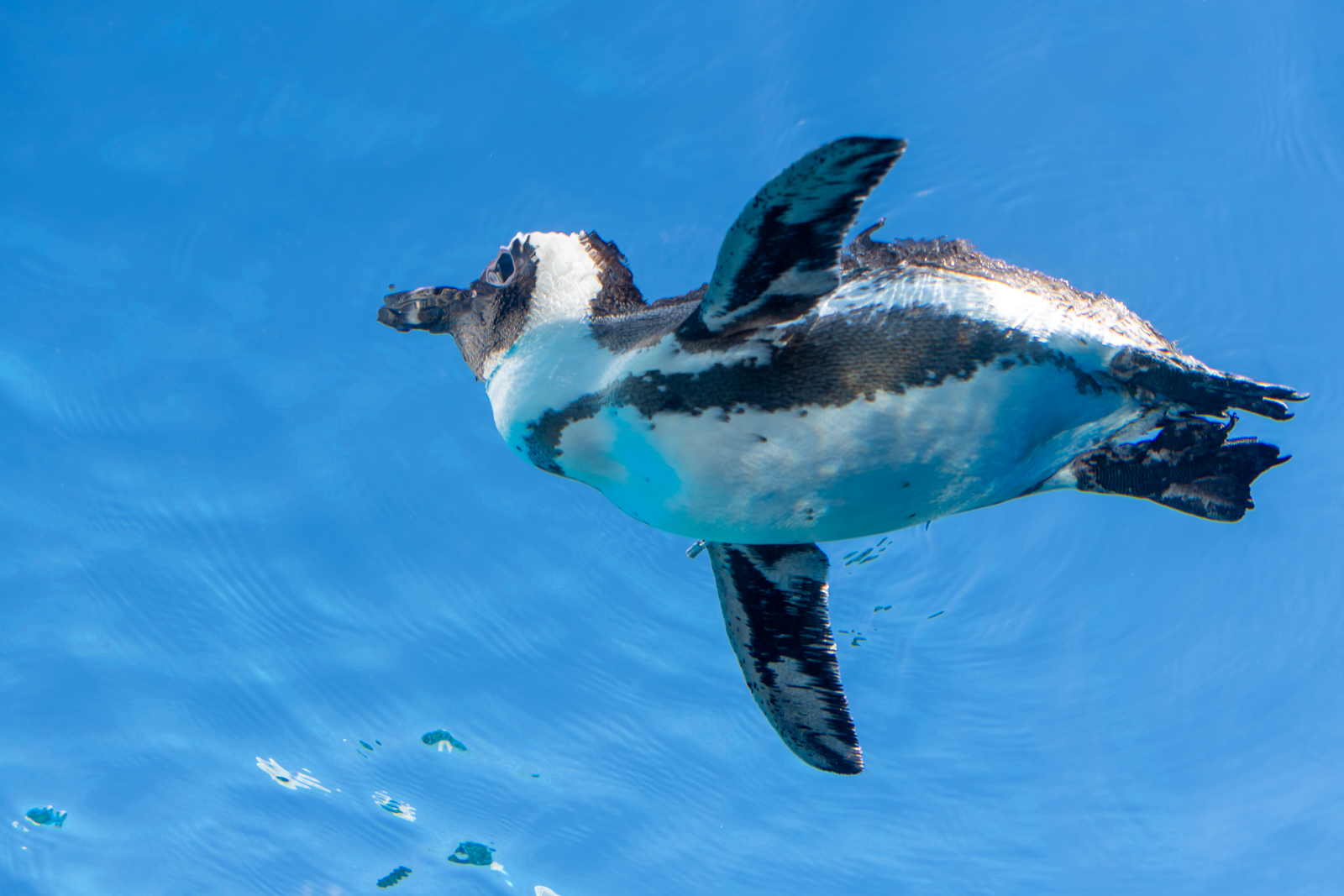 「青空をバックに泳ぐペンギン」、初めて撮ったかもしれない。