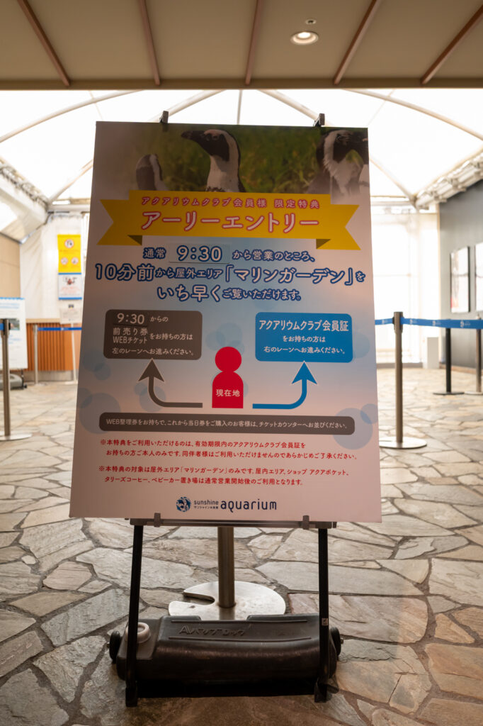 「アクアリウムクラブ」会員だと一般入場より10分早く入館できるらしい。