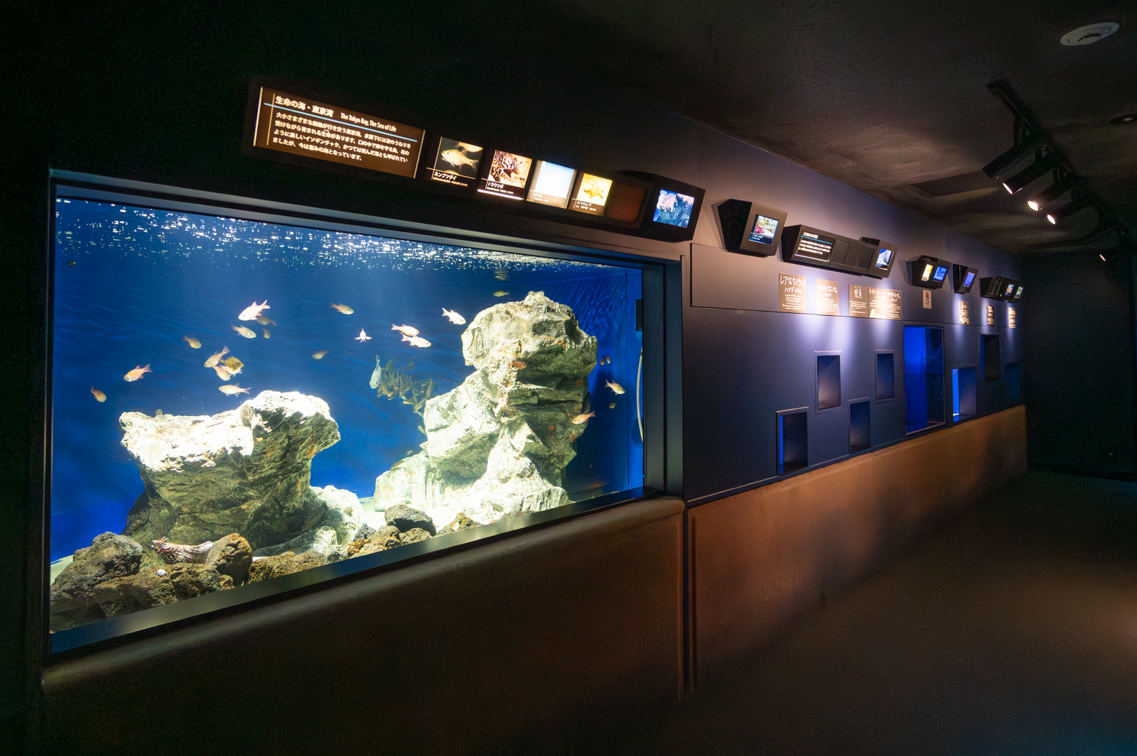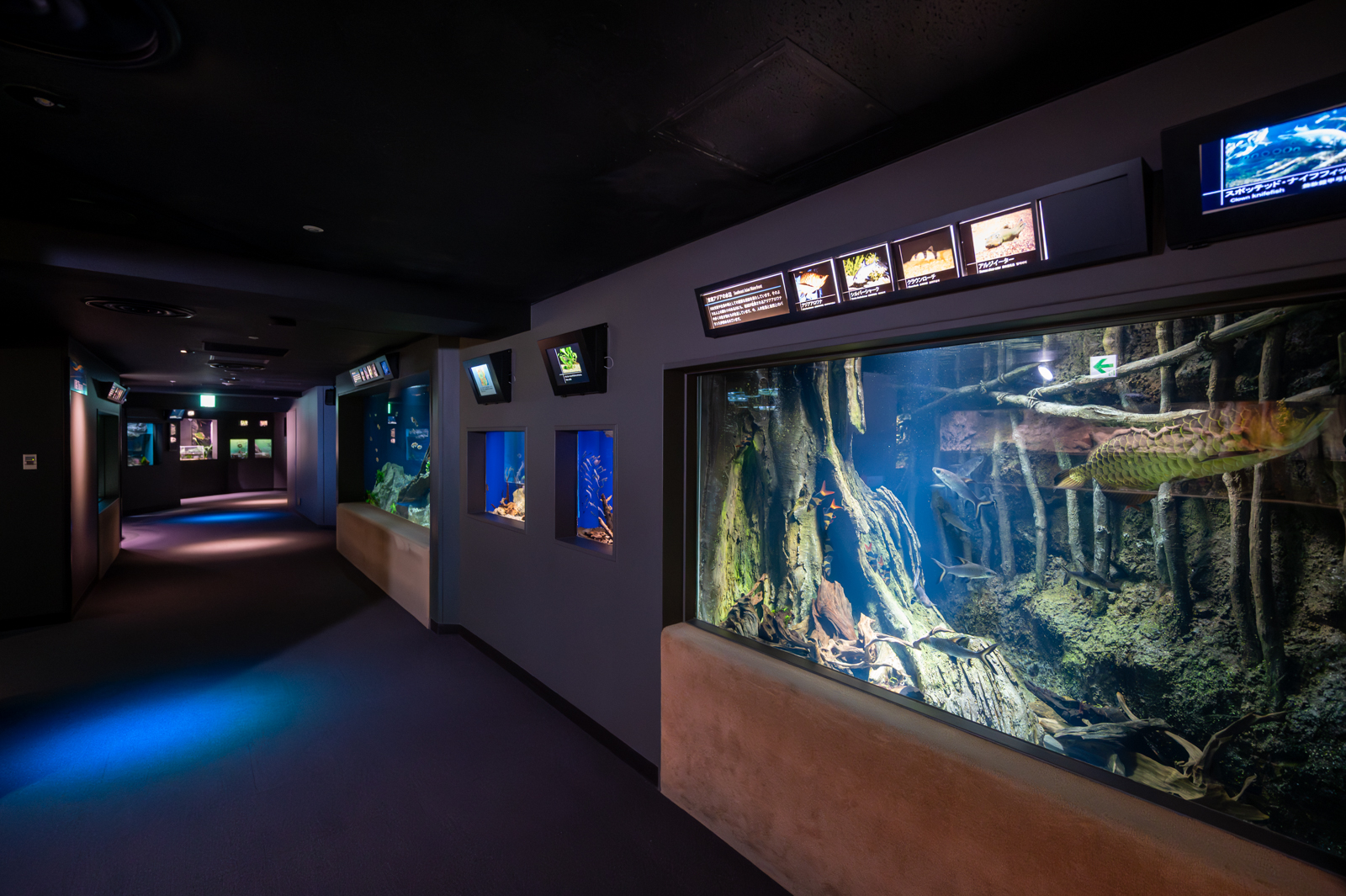 本館に入ってすぐの、小水槽が続くエリア。「ここに誰もいなくて見放題」の素晴らしさよ。