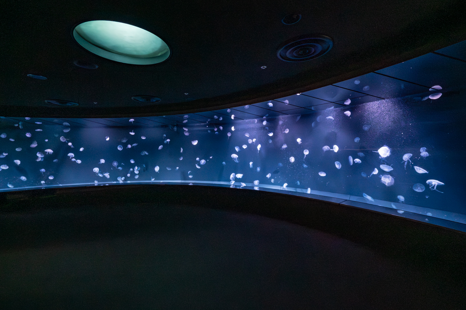 大水槽前も、「海月空感」のミズクラゲ水槽前も(ほぼ)無人!