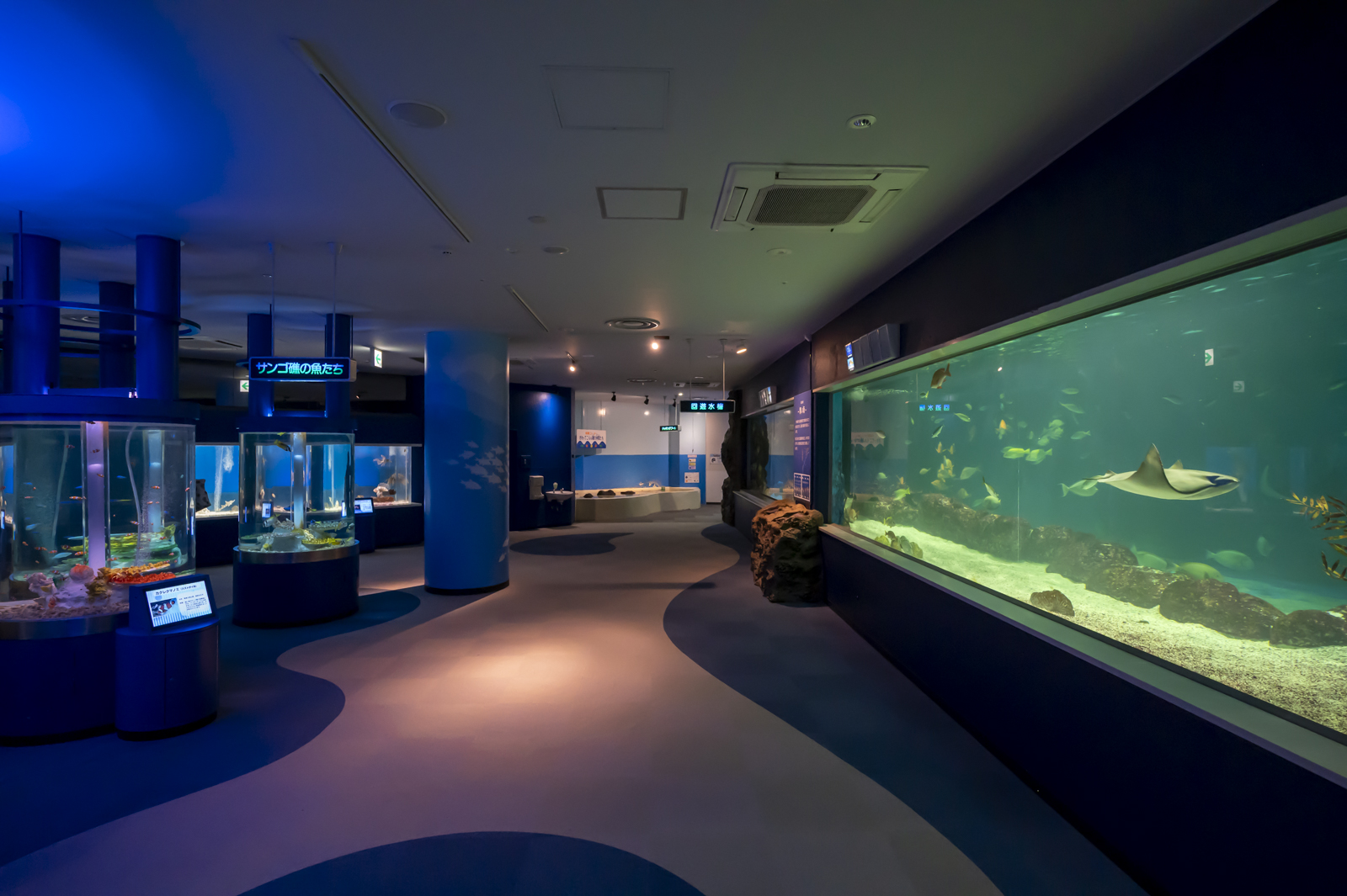 「屋内展示が主となり、大型の海獣類などは少なく魚類展示が中心である。」